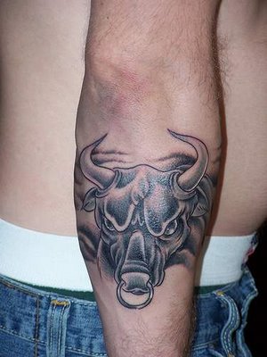 Bull head tattoos often appear as rather large designs, sometimes with the bull portrayed as being very hostile, like as if he were being tempted by the red towel of a matador.